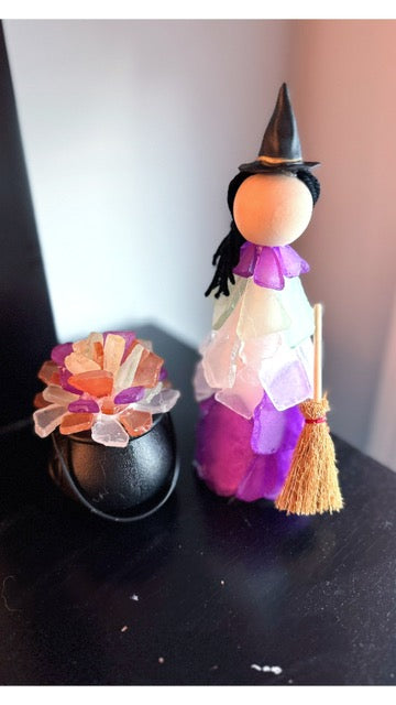 ✨ Add some witchy sparkle to your fall season — craft your very own Sea Glass Witch (and cauldron, if you dare)!